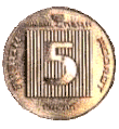 5 новых агор | 18,5 | 0,9 | Аверс: Герб Израиля; текст «Израиль» на иврите, арабском и английском языках; Реверс: цифра «5»; текст «новых агор» и год выпуска на иврите. |