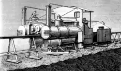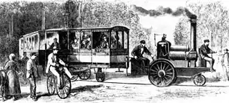 После этого в течение примерно полувека ничего нового в области строения монорельса не происходило. Попытки создать работоспособный монорельс, теперь уже на паровой тяге, возобновились в конце XIX века. Известно, что в 1872 году на политехнической выставке в Москве демонстрировался участок монорельсовой дороги конструкции инженера Лярского[7][8]. В 1876 году паровой монорельс демонстрировался на выставке Centennial Exposition в США. Длина трассы монорельса составляла 170 ярдов (около 150 м)[9]. С развитием электротехники на монорельсах стали использовать электрический привод. Одна из первых электрических монорельсовых дорог, известная как Enos Electric Railway, была построена в 1887 году в Гринвилей, Нью-Джерси.