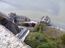 Ещё ниже — соответственно помещение для капелланов и подвальное помещение. Учитывая предыдущие катастрофы, северная стена здания была укреплена контрфорсами, что создало настолько сильный художественный эффект, что Виктор Гюго назвал вид на аббатство со стороны моря видом на «самую красивую стену Европы».
