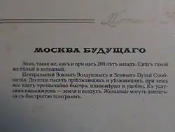 Оглядываться с сожалением на прекрасное прошлое — задача не только трудная, но просто неприятная. Как бы прекрасно ни было прошлое, раз оно прошло, говорить о нем нечего. Предоставляя мудрым историкам описывать и изучать минувшие времена, мы, составители предлагаемого краткого альбома, имели в виду заглянуть, по мере наших сил и пестроты красочной Фантазии, в более или менее отдаленное будущее нашей всем милой и всем знакомой матушки Москвы. Каждому, кто знает и любит Москву, небезынтересно будет мысленно взглянуть на то, что будет с Москвою и её обитателями приблизительно через 200—300 лет. Вот какие картины открываются нашим взорам на основании более или менее логических выводов.