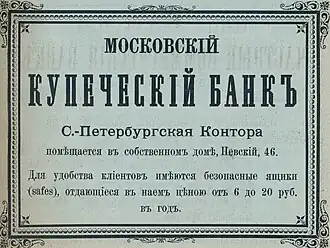 - ↑ Под ред. Е. М. Жукова. Московский купеческий банк // Советская историческая энциклопедия. — М.: Советская энциклопедия. — 1973—1982. Советская историческая энциклопедия. — М.: Советская энциклопедия . Под ред. Е. М. Жукова. 1973—1982.