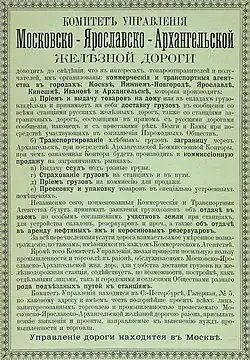 - ↑ РГИА, ф. 446, оп. 31, д. 21. Доклад № 209 от 13 октября 1906 г. "О присвоении соединенным Московско-Ярославско-Архангельской и С.Петербурго-Вологдо-Вятской железным дорогам наименования «Северные железные дороги».