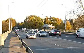Мост имеет 4 полосы движения (по 2 в каждом направлении); по обеим сторонам моста оборудованы пешеходные тротуары.