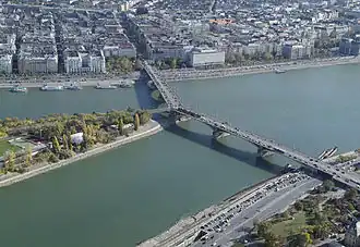 Проект моста разработал французский инженер Э. Гуэн в сотрудничестве с инженером Эйфелем[2]. Построен в 1872—1876 годах компанией Maison Ernest Gouin. Мост состоит из двух частей, соединённых на острове Маргит, причём эти части расположены друг к другу под углом в 165°. Причиной столь необычной формы является тот факт, что небольшая ветка для соединения моста с островом Маргит была спешно включена в оригинальный проект, однако так и не была построена за 2 десятилетия ввиду отсутствия средств.