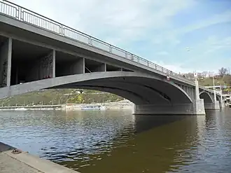 Мост представляет собой трёхпролётное железобетонное арочное сооружение с ездой поверху и двумя путепроводами транспортной развязки на обоих берегах Влтавы. Разбивка на пролеты 58,8 + 64,4 + 65,1 м. Длина моста составляет182 м (263 м с подходами), ширина — 24 м. В поперечном сечении пролетное строение состоит из трех сегметных арок шириной 5,8 м, расположенных на расстоянии 2,5 м друг от друга, и двух консолей шириной 1 м для тротуаров.