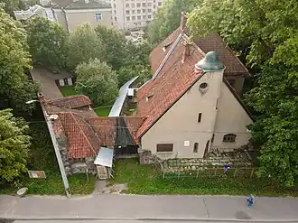 Усадьба представляет собой ансамбль главной и вспомогательных построек. Все усадебные постройки — дом, флигель, сараи — сложены из бетонных блоков, кирпича и булыжного камня, покрыты черепицей сложной конфигурации. Главное здание ансамбля состоит из одноэтажной части, обращенной на улицу, и двухэтажной, обращённой во двор.