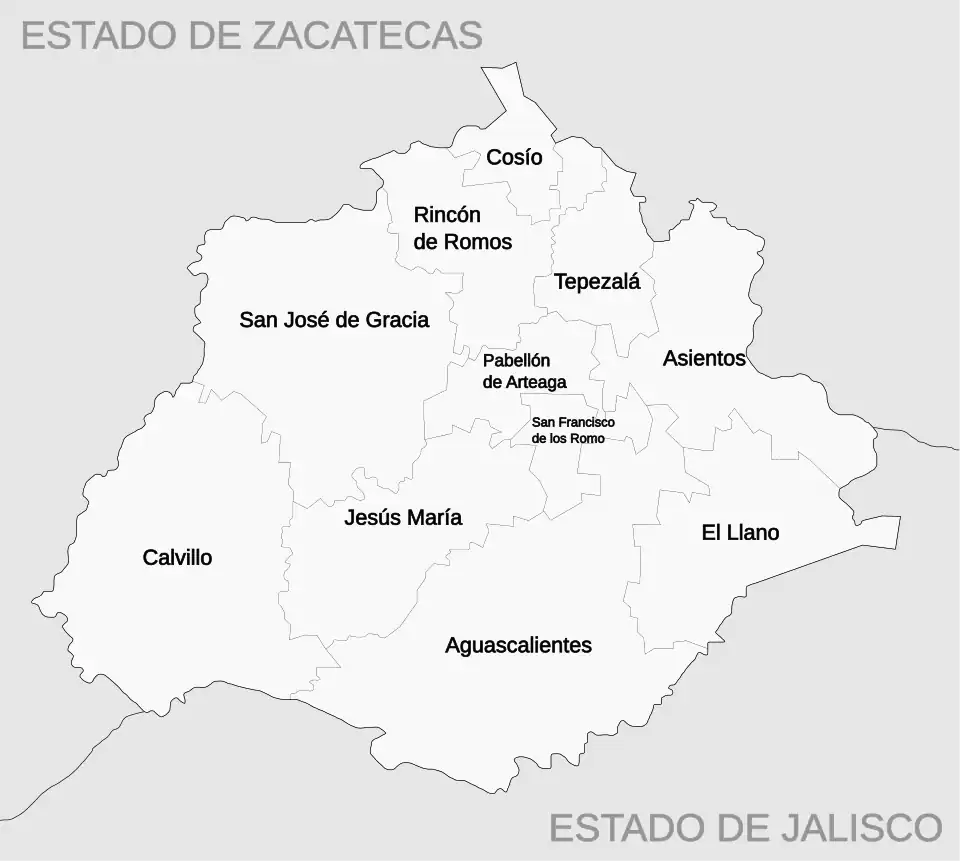 Штат Мексики Агуаскальентес является одним из 32 субъектов Мексиканских Соединённых штатов. Он разделён на 11 муниципалитетов.