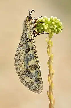 Palpares speciosus с нечасто встречающейся у муравьиных львов жёлтой окраской крыльев