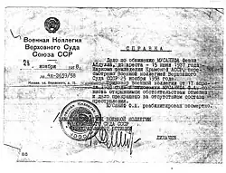 Дело по обвинению было пересмотрено Военной коллегией Верховного Суда СССР 25 ноября 1958 года. В справке о реабилитации сказано: «Из-за отсутствия состава преступления приговор от 17 апреля 1938 года отменен. Мусаниф Февзи реабилитирован посмертно».[5][3]