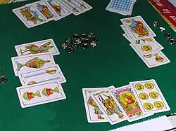Игра проходит между двумя противоположными парами игроков испанской декой, которая состоит из 40 карт, без восьмерки, девятки, или десятки и джокеров, и она имеет различные правила в разных регионах Испании. В игре четыре раунда: