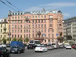| № 5 / Зоологический переулок, № 2—4 | Доходные дома Ф. И. Кирикова, затем общежитие СПбГУ, уничтожены в 2008 году[3] | И, Н. Иорс, И. И. Долгинов | 1881—1883, 1910—1914 | ![]() |