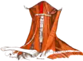 | Нижняя косая часть (лат. pars obliqua inferior) | Тела I—III грудных позвонков (лат. corpus TI—III) | Передняя поверхность рёберно-поперечных отростков трёх нижних шейных позвонков (лат. processus costotransversus CV—VII) | ||||||