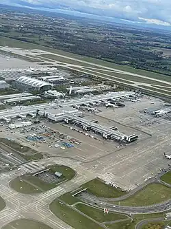 Аэропорт имеет две параллельные взлётно-посадочные полосы и одну бетонную вертолётную площадку. Каждая из ВПП (08R/26L и 26R/08L) по 4 000 м длиной и 60 м шириной[26].