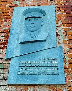 На внутреннем фасаде Тереспольских ворот, ныне «башня Наганова», была установлена мемориальная доска с барельефом Алексея.