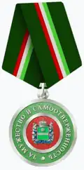 Медаль «За мужество и самоотверженность» учреждена для награждения участников российского вторжения на Украину: волонтёров, участвующих в восстановлении разрушенных населённых пунктов, собирающих гуманитарную помощь; сотрудников силовых структур, рискующих жизнью в ходе борьбы с преступностью, во время стихийных бедствий, пожаров или катастроф и других чрезвычайных ситуаций. Для лиц награждённых медалью предусмотрена единовременная денежная выплата. |