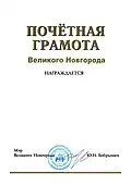 - ↑ Решение Думы Великого Новгорода от 23.12.2004 № 45 «О муниципальных наградах Великого Новгорода» (недоступная ссылка)