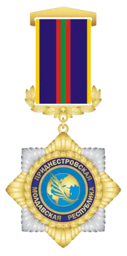 - ↑ Указ Президента ПМР от 22 сентября 2023 года № 350 «О внесении изменения и дополнений в Указ Президента Приднестровской Молдавской Республики от 5 июля 2019 года № 215 «О государственных наградах Приднестровской Молдавской Республики»». president.gospmr.org. Дата обращения: 24 октября 2023. Архивировано 30 сентября 2023 года.