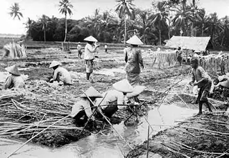 По состоянию на 2010 год в Индонезии проживало 237,641 млн человек (в 1930 году — 60,6 млн человек, в 1961 году — 97 млн, в 1971 году — 119,2 млн, в 1980 году — 147,5 млн[3]). 90 % населения приходится на долю 15 крупнейших народов и этнических групп. Наиболее многочисленными среди коренных индонезийцев являются яванцы, сунды (или сунданцы), батаки, индонезийские малайцы, мадурцы, минангкабау, батавцы (или бетави) и бугисы. К достаточно крупным народам и этногруппам относятся ачехцы, бантенцы, банджары, балийцы, сасаки, даяки, макасары, минахасцы и чиребонцы. Среди этносов некоренного происхождения наиболее многочисленными являются китайцы, арабы, индийцы, а также потомки от смешанных индонезийско-европейских браков — евразийцы (они же индоевропейцы или так называемые индо)[4][2][5].