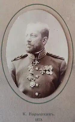 - ↑ Кирилл Михайлович Нарышкин (10.09.1854 - 1921). Дата обращения: 27 марта 2024. Архивировано 27 марта 2024 года.