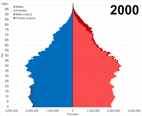| 2000 | 282 162 411 | 4 058 814 | 2 403 351 | 1 655 463 | 14,4 | 8,5 | 5,9 | 5,2 | 2,056 |