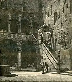Кортиле Палаццо Барджелло во Флоренции. Рисунок Г. Бауернфейнда. 1887