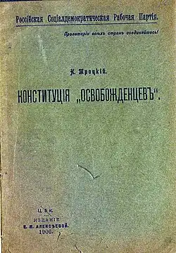 - Троцкий Н. Конституция «Освобожденцев». — СПб.: Тип. товарищества «Общественная польза», РСДРП, 1906. — 19 с.