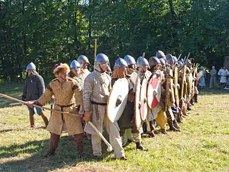 В 688/689 году император Юстиниан II насильно переселил славянские племена с Балкан в фему Опсикий. Многих переселённых славян он включил в состав особого военного корпуса. Его численность насчитывала около 30000 сильных воинов, и который получил греческое название «λαός περιούσιος», что означает «избранный народ»[1][2][3].