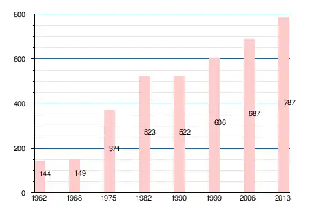 | 1962 | 1968 | 1975 | 1982 | 1990 | 1999 | 2006 | 2008 | 2011 | 2012 | 2013 |
