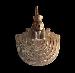 | Атрибуты | Лук, стрелы, щит на голове, анкх, красная корона Нижнего Египта | ||||