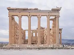 В ордере Британского музея архитектор Роберт Смёрк заимствовал базы из храма Диониса в Теосе, а капители из храма Афины Полиады в Приене