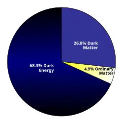 - Тёмная энергия: какова причина наблюдаемого ускоренного расширения Вселенной (фаза де Ситтера)? Почему плотность энергии тёмной энергетической составляющей такая же, как и плотность вещества в настоящее время, когда они эволюционируют с течением времени совершенно по-разному; может ли быть просто, что мы наблюдаем в нужное время? Является ли тёмная энергия чистой космологической постоянной, или применимы альтернативные модели (квинтэссенция), такие как фантомная энергия?