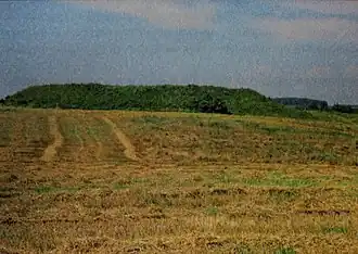 Размещался на холме на территории современного Старого парка[13]. Это возвышение, вероятно находилось среди болот и было хорошо защищено со всех сторон, а с южной стороны оно фактически замыкало мыс, на котором впоследствии был построен замок Николая Христофора Радзивилла Сиротки. О размерах этого возвышения можно судить по плану Несвижа 1796 года, на котором это возвышение находится на севере от каменного замка Николая Радзивилла Сиротки, на этом возвышении в то время размещались конюшни и каретный двор Радзивиллов. Судя по плану, возвышение имело размеры около 200×100 метров и стояло в начале мыса между созданным позднее Диким озером и болотистой низиной, размещённой к северо-западу от замка. Возвышение ещё просматривается на плане города 1796 г., но уже отсутствует на плане 1810 г.[14]