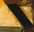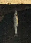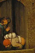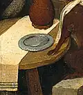 - ↑ Грязь на холсте в этом месте не позволяет увидеть изображение собаки.