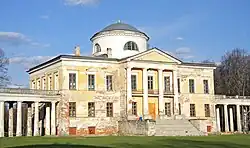 - Главный дом с колоннадой и флигелями в усадьбе Знаменское-Раёк в селе Раёк[17].