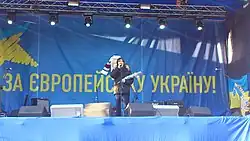 Во время Оранжевой революции Евгения Нищука называли «голосом Майдана», поскольку он был рупором Оранжевого Майдана. Он же стал модератором на сцене Евромайдана 2013 года, куда его пригласил Юрий Луценко. По словам Евгения Нищука, он 9 лет (с 2004 до 2013) не участвовал в митингах.