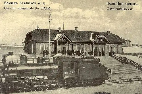 За право быть местом постройки станции шла борьба между Новосибирском (тогда Новониколаевск) и Томском (административным центром Томской губернии)[1]. Для сооружения станционного комплекса использовались типовые проекты[2], разработанные для Алтайской железной дороги[3]. Место для постройки было выбрано Новосибирской городской думой 22 октября[4]. Для будущей станции был выбран участок, ограниченный с юга городской чертой Новониколаевска (сейчас — Коммунстроевская улица), с севера — Гавриловской (улица Добролюбова), с востока — Казанской (улица Декабристов) и с запада — Трактовой улицей[1]. Строительство продолжалось с 1912 по 1915 год[1], здание вокзала появилось в 1914[5]. Кирпичные постройки станционного комплекса располагались в несколько ярусов[3]. Станция стала местом, где брала начало новая Алтайская железная дорога[6]. При ней сформировался пристанционный посёлок Алтайская[7].