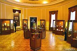 Залы дворца украшали золочённые панели и лепнина, а также произведения живописи[1].