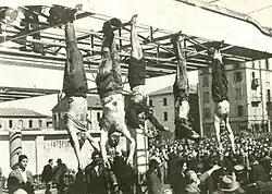 Расправа над Бенито Муссолини и Кларой Петаччи в апреле 1945 года, напоминавшая линчевание, вызвала в странах антигитлеровской коалиции некоторое возмущение своей формой — но не сутью. Так, в марте 1945 года, отвечая в Палате общин на прямой вопрос, Иден передал решение о судьбе Адольфа Гитлера «тому британскому солдату», которому предстояло встретить фюрера. Подобное поощрение линчевания прямо нарушало действовавшие военные нормы, которые исключали расстрел на месте любых военнопленных, вне зависимости от их ранга или личного отношения[44][47].