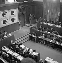 Нюрнбе́ргский проце́сс (англ. Nuremberg trial, нем. Nürnberger Prozess, фр. Procès de Nuremberg) — первый и ключевой из серии судебных процессов над рядом военных преступников нацистской Германии[1], проходивших во Дворце юстиции города Нюрнберга после окончания Второй мировой войны, в 1945—1949 годах. В ходе процесса, открывшегося 20 ноября 1945 года, перед беспрецедентным судебным органом — Международным военным трибуналом (МВТ) из восьми судей, представлявших четыре страны антигитлеровской коалиции, группе бывших руководителей нацистской Германии были предъявлены обвинения в преступлениях. Обвинительное заключение, подготовленное командами прокуроров из США, Великобритании, СССР и Франции, содержало четыре пункта: преступления против мира, преступления против человечности, нарушение законов войны (военное преступление) и заговор с целью совершения данных преступных действий.