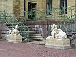| Собственный сад | 1794—1797 годы | Один из трёх регулярных садов, в центре круглой площадки, образованной сходящимися аллеями, находится статуя Флоры. Сад украшен также десятью гермами, двумя мраморными вазами и мраморной головой Геры на балконе сада[2] | ![]() |