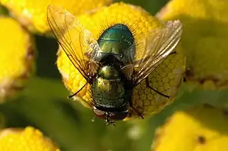 Зелёные падальницы — мухи с блестящим металлическим брюшком зелёного или золотисто-зелёного цвета. Их длина варьируется от 6 до 10 мм. На усиках — перистая щетинка[4][5]. Распространены повсеместно, в том числе в домах и садах. Наиболее естественная для них среда обитания — места открытой продажи продуктов, скотобойни, мусорные и выгребные ямы. Часто в большом количестве встречаются на экскрементах, падали или гниющем мясе. Являются переносчиками микробов[уточнить] и яиц паразитных червей. Питаются разжиженным разлагающимся материалом[6][7][8][9].