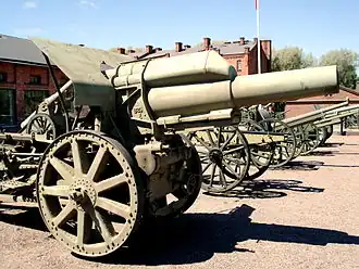 Га́убица (нем. Haubitze, от чеш. houfnice, первоначально — орудие для метания камней) — тип артиллерийского орудия, предназначенного преимущественно для навесной стрельбы с закрытых огневых позиций, вне прямой видимости цели. Гаубицы входят в состав войсковой (в иностранных армиях полевой) артиллерии, имеют калибр от 100 мм и выше, относительно короткий ствол (15—30 калибров), переменный заряд, достаточно высокую скорострельность — от 0,5—1 до 6 выстрелов в минуту (в зависимости от калибра), дальность стрельбы до 30 км и угол возвышения до 75 градусов. Большинство современных гаубиц самоходные, старые системы имеют механическую тягу. Длина ствола современных гаубиц составляет до 50 и более калибров, скорострельность до 10—12 выстрелов в минуту, дальность стрельбы до 50 и более км.