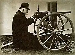 В 1883 году американский изобретатель Хайрем Максим (1840—1916) создал первый образец автоматического оружия — пулемёт Максима[19]. Он решил использовать энергию отдачи оружия, которая до этого никак не использовалась. В начале 1880-х годов Хайрем Максим дал предложение правительству США о принятии его пулемёта на вооружение. Однако изобретение никого в Америке не заинтересовало, и тогда Максим эмигрировал в Великобританию, где его разработка первоначально также не вызвала особого интереса со стороны военных.