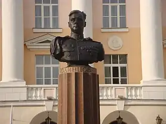 За умелое вождение групп штурмовиков, за эффективность выполнения боевых заданий, за лично произведённые боевые вылеты имеет ряд благодарностей от наркома обороны Маршала Советского Союза товарища Сталина, от командования наземных войск и авиасоединений…"