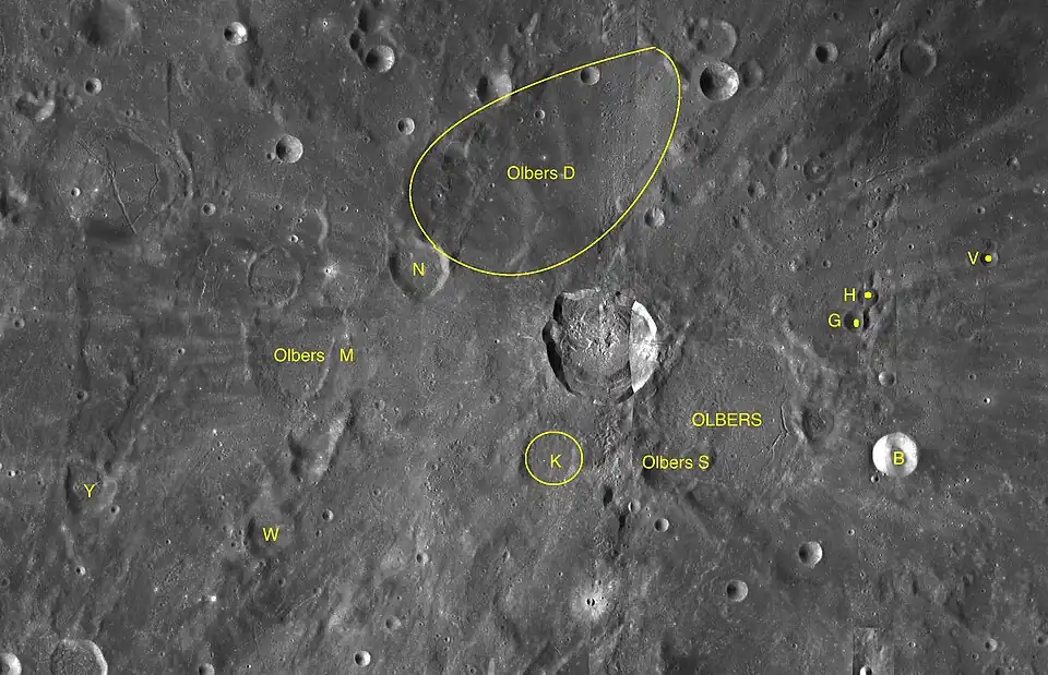 - ↑ Кратер Ольберс на карте LAC-55. Дата обращения: 5 июля 2020. Архивировано 27 ноября 2020 года.