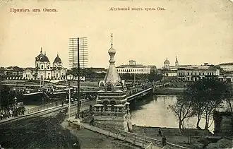 Место расположения Омска имело большое значение с древнейших времён. Здесь располагались поселения и могильники немногих развитых народов, живших с VI тысячелетия до нашей эры по XIII век нашей эры. В XVII веке потребность в русском городе в устье Оми была столь велика, что о его основании неоднократно просили царя. Заложен Омск был И. Д. Бухгольцем в 1716 году как крепость, защищавшая южные границы государства[7]. Основное развитие город получил в XX веке: при господстве белой армии под командованием Верховного Правителя России А. В. Колчака (1873—1920) был столицей Российского Государства в 1919—1920 годах, существенно расширился в годы Великой Отечественной войны, когда сюда были эвакуированы многие заводы из Европейской части России, и до распада Советского Союза был известен как «Город-сад», «Город молодёжи», «Город науки»[8].