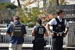 В США есть федеральные правоохранительные ведомства, которые расследуют федеральные преступления (ФБР, Управление по борьбе с наркотиками, Бюро алкоголя, табака, огнестрельного оружия и взрывчатых веществ, Секретная служба, федеральные маршалы, Иммиграционная и таможенная полиция США и некоторые другие). Всего в 2008 году насчитывалось 120 000 федеральных государственных служащих, обладающих правом на постоянное ношение оружия и правом производить аресты. Из них 40 % занимались расследованием преступлений, 22 % несли патрульно-постовую службу, 18 % были заняты в тюремной системе, 14 % занимались расследованиями и инспекциями, не связанными с преступлениями, 4 % занимались обеспечением деятельности судов, 1 % занимался обеспечением безопасности и защиты[3].