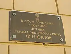 - Мемориальная доска установлена 30.06. 2010 года на фасаде здания Аликовской школы имени И. Я. Яковлева, которую окончил Ф. Н. Орлов.