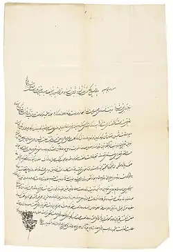 «Мы получили письмо, привезённое подовником бароном де Вреде. Вы утверждаете, что реки Кура, Араз и Арпа формируют собой прямую линию, созданную самим Всевышним в качестве границы между двумя государствами. Вашему Превосходительству хорошо известно, что на протяжении многих лет граница между Ираном и Россией проходила по прямой линии, сформированной Моздоком и окружающими его реками… Вы также утверждаете, что Иран получает незначительный доход с занятых вами провинций и что Иран не должен рисковать дружбой с Россией ради таких проблемных областей. Мой ответ таков: если эти земли являются такими проблемными, то не лучше ли оставить их в руках у бывших владельцев, а не оккупантов? Вы также утверждаете, что наш двор отказывается отправить посла к вашему двору. Мы бы никогда не отказались бы от отправки посла, если бы ваш двор демонстрировал благосклонность в отношении нас… Вы также утверждаете, что Россия сосредоточила свои войска, поскольку в прошлом Грузия страдала от набегов со стороны иранцев и дагестанцев, которые парализовали торговлю в регионе. Я прошу Ваше Превосходительство обратиться к своей совести и ответить — стоят ли беззакония некоторых иранских подданных разрыва нашей дружбы и нарушения наших границ? Вы также утверждаете, что поскольку Франция заключила с Россией союз, то она не сможет сдержать данное Ирану обещание. Но сей факт вовсе не говорит о том, что наше правительство не будет защищать свои владения… Мы дали указание нашему послу в Париже Аскер Хан Афшару обратиться к французскому императору и к вашему послу в Париже графу Толстому о заключении договора между Ираном, Францией и Россией. Посол Франции в Тегеране генерал Гардан Хан обратился к вашему послу, подовнику барону де Вреде, и французскому послу в Санкт-Петербурге Коленкуру о прекращении боевых действий сроком на один год…»[4].