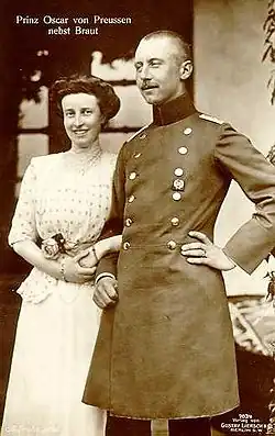 Принц Оскар с супругой Инной Марией, 1914 годОскар Вильгельм Карл Ганс Куно, принц Прусский (12 июля 1915 — 5 сентября 1939) — обер-лейтенант резерва вермахта. Участник Польской кампании, командир взвода 6-й роты 51-го пехотного полка 18-й пехотной дивизии. Погиб в бою. Был похоронен в Сыцуве, в 1996 году перезахоронен в Потсдаме.[4] Женат не был. Детей не имел.